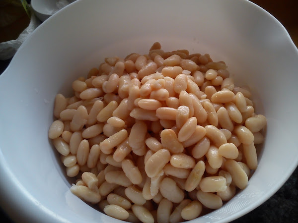3 botes grandes de alubias blancas cocidas.