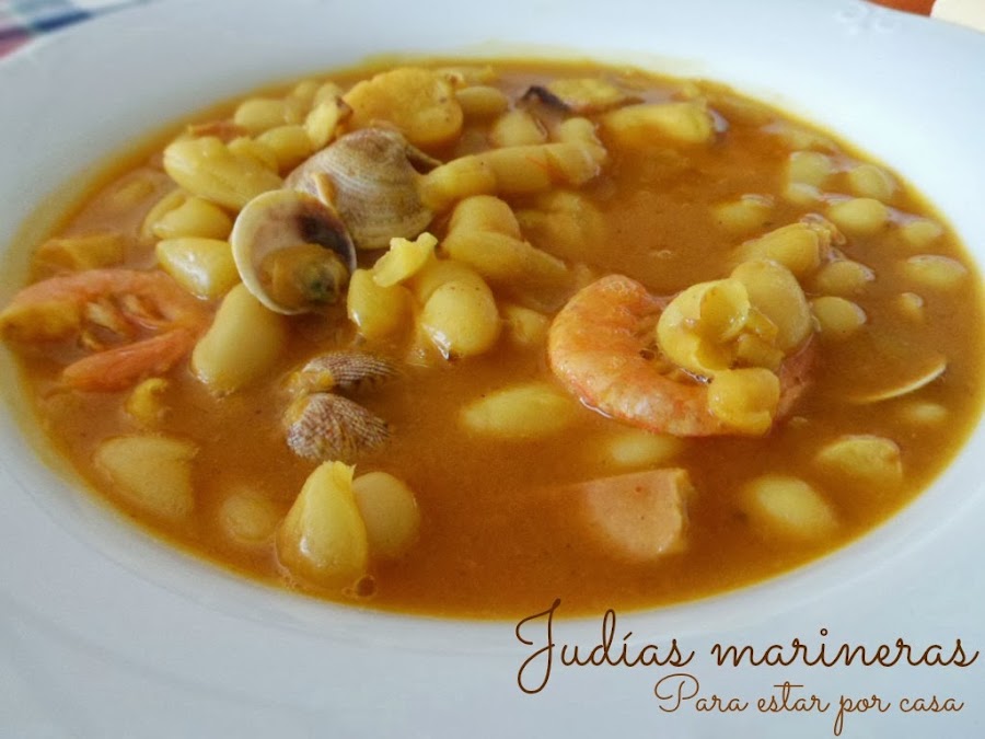 En mi caso, me he decidido por un plato de legumbre acompañado de ricos ingredientes de mar. Se trata de una judías marineras preparadas con pulpo, gambas y chirlas.