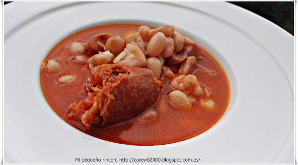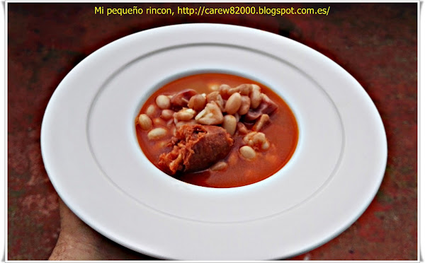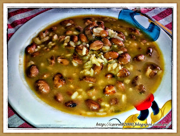 La olla de las judías a la hora las probáis y dependiendo de cómo estén, se añade medio vaso de arroz. Hay que tener en cuenta que el arroz está en veinte minutos. Se añade a la olla de las judías, (también podemos ponerles, chorizo, beicon y morcilla troceados), pero lo dejo a vuestra elección.