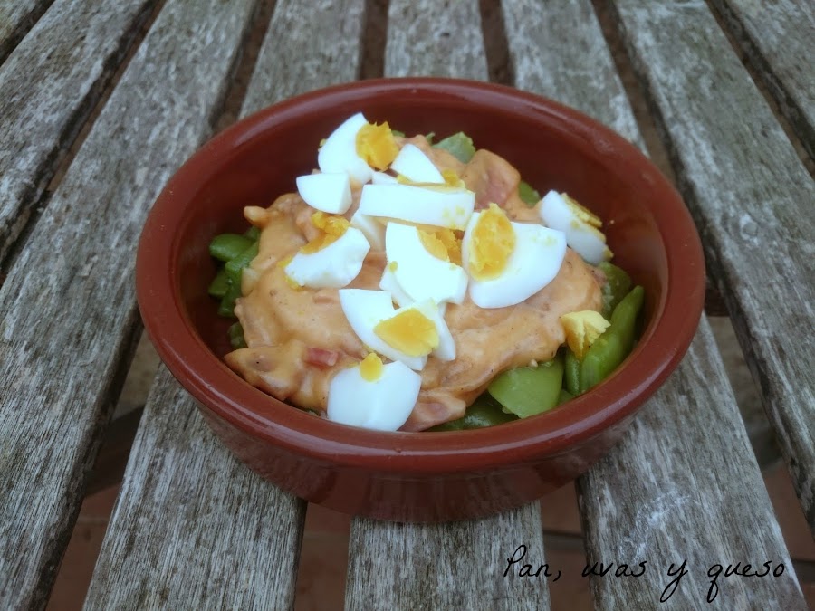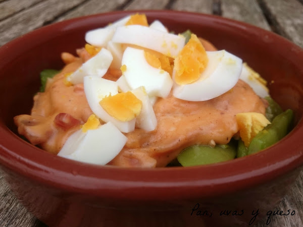 Las servimos con la salsa por encima y el huevo cocidopicado.