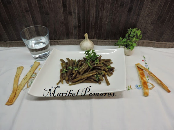 Ponemos las judías verdes en el plato y le echamos por encima el aliño.