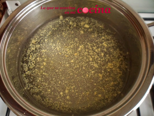 Ponemos a hervir agua con caldo de pollo.