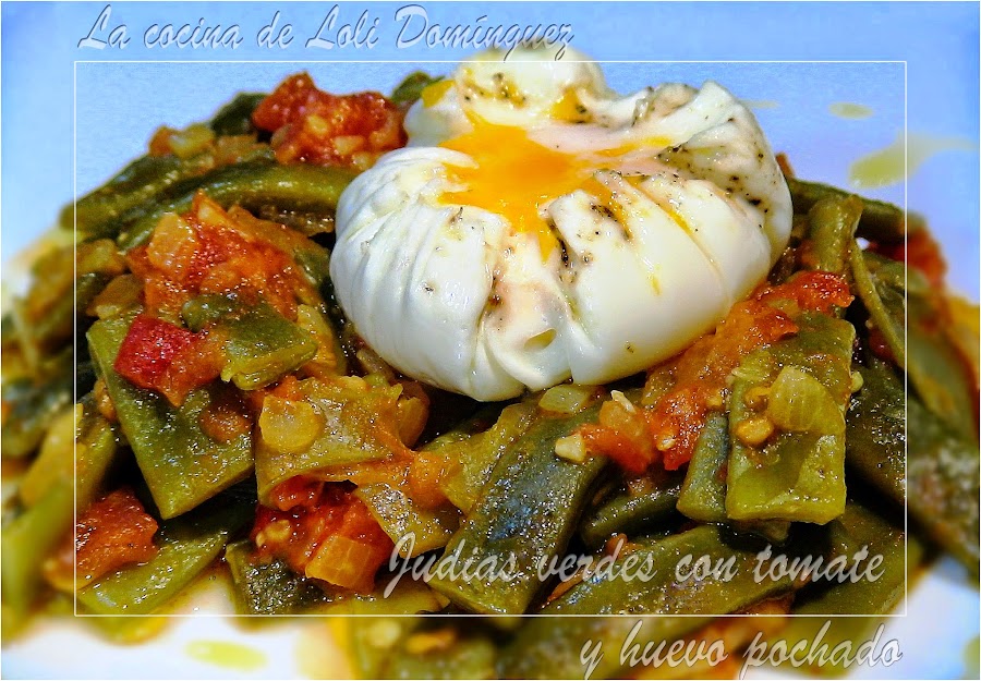 Judías verdes con tomate y huevo pochado, un primer plato rápido, fácil y muy saludable que además esta?.. ¡¡Buenísimo!!