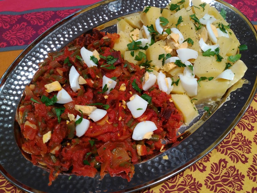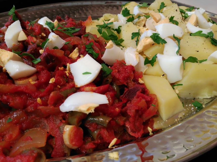 - Servimos junto con las patatas, picamos los huevos por encima, y espolvoreamos perejil picado.