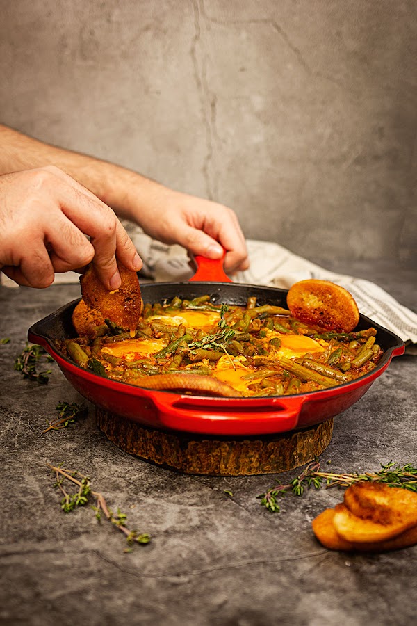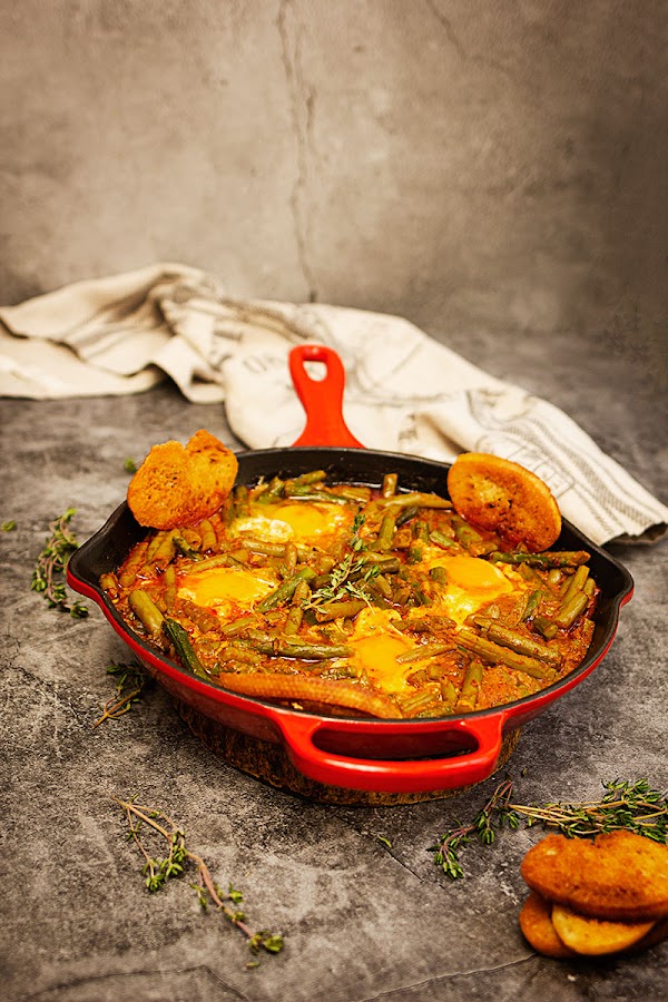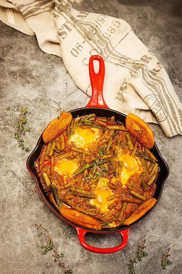 Otro mes mas vuelvo con el reto consistente en preparar un plato cuyo ingrediente principal sea un producto en conserva, en esta ocasión las elegidas por Sofia han sido las judías verdes. Fuente de minerales y antioxidantes, su aporte calórico es muy bajo, por lo que resultan ideales en los regímenes de adelgazamiento.En esta ocasión he vuelto a mis recuerdos de la infancia con estas judías esparragadas o a la andaluza, que preparaba mi madre, no tanto con judías sino mas bien con espárragos trigueros o incluso con habas tiernas, pero que igualmente resultan muy socorridas para preparar en cena estupenda en pocos minutos.