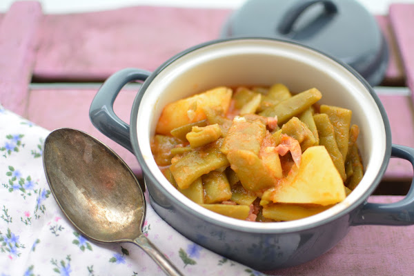 Este plato es un clásico, unas judías verdes estofaditas con su ajito, su salsita de tomate y su jamoncito. Vamos, que no habrá quejas en casa por comer verduras!!