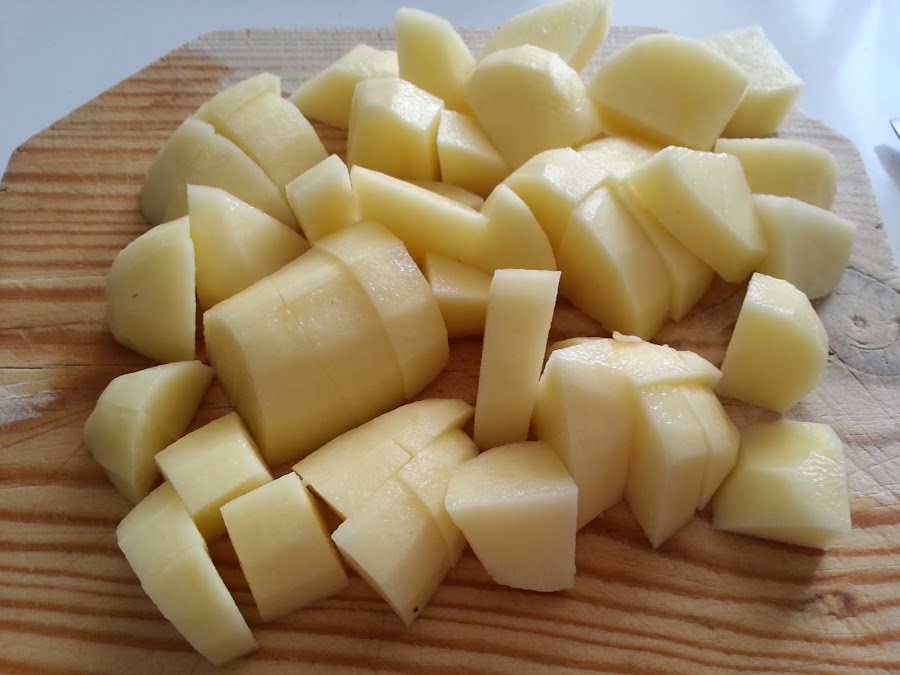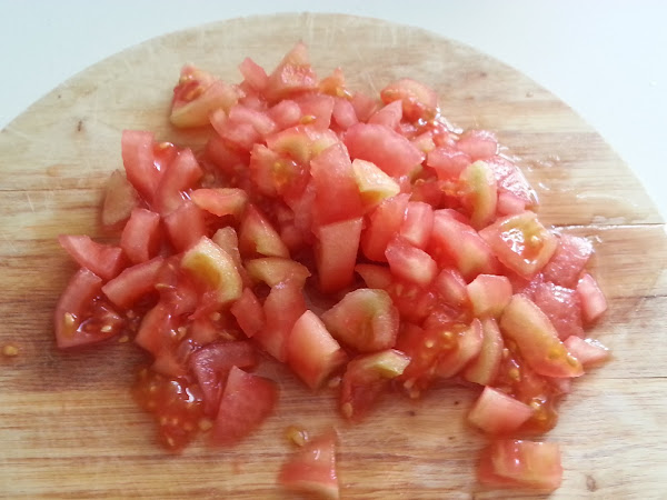 2. - Mientras vamos pelando el tomate y cortándolo en pequeños daditos.