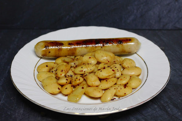 Freímos las salchichas hasta que se doren y reservamos.