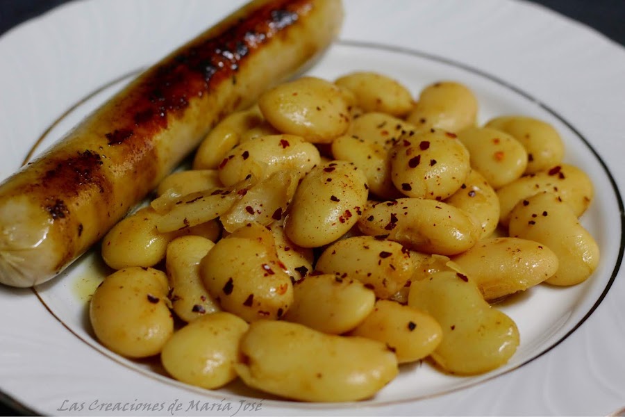 Echamos los judiones en una sartén con el ajo en polvo, salteamos un poco para que se calienten.