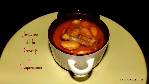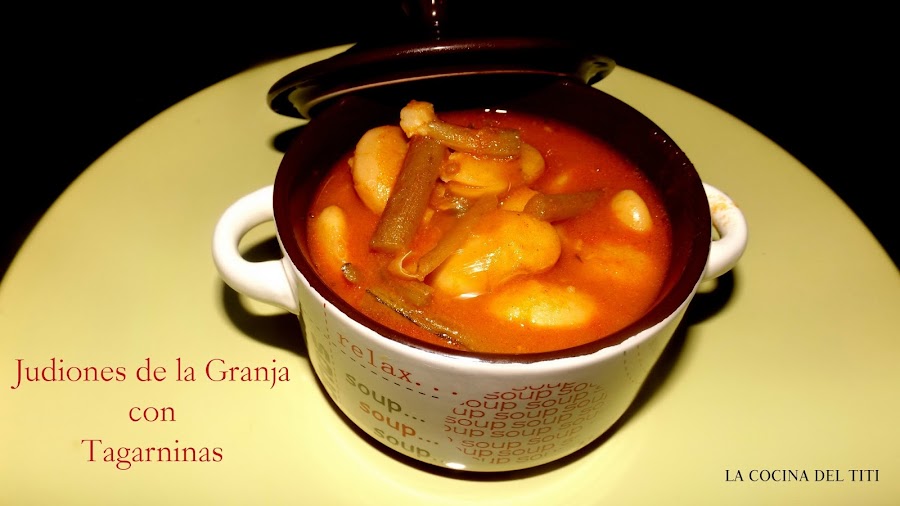 Hola a todos hoy toca cuchareo nos vamos a ir a una leguminosa como son unos judiones de la granja es una variedad de judia o alubia de gran tamaño muy original de la parte de Segovia y que mejor utilizarla con tagarninas que para los que desconoceis a este cardillo es muy consumida por aqui abajo en el sur de Andalucia en estas fecha de Otoño, Invierno, es una especie de cardillo en el que sus hojas espinosas se le pela y nos quedamos con sus tallos.