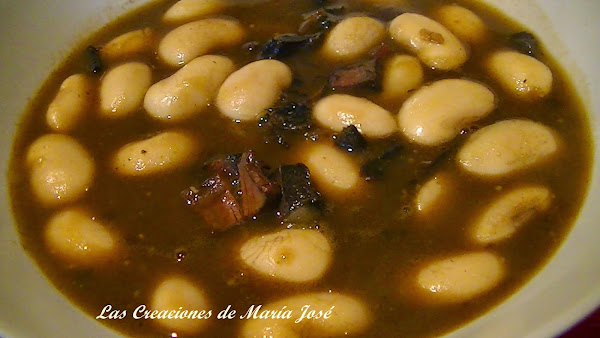 Se ponen los judiones a remojo 24 horas. Se ponen a cocer con la patata y el diente de ajo, cuando esten cocidos se saca la patata y el diente de ajo y se tritura, se echa otra vez a la cazuela con las 2 latas de calamares en su tinta y se deja cocer 10 minutos a fuego medio. Listo y bueniiisiiimooo.