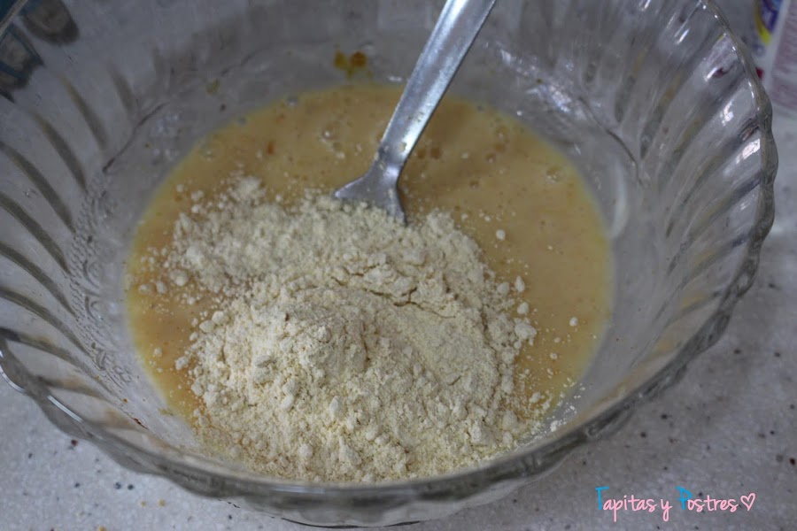 Añadimos la harina de garbanzos y mezclamos bien. Debe quedar una mezcla cremosa.