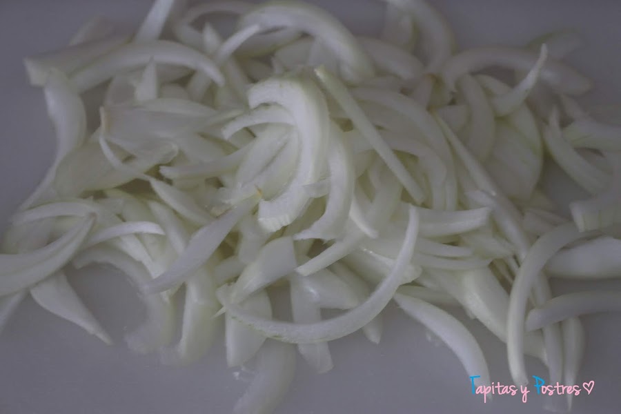 Por eso me resultó perfecto encontrar esta receta en esta página porque además de apetecerme mucho probar esta receta, es un plato rápido, sencillo y la cebolla es la reina.