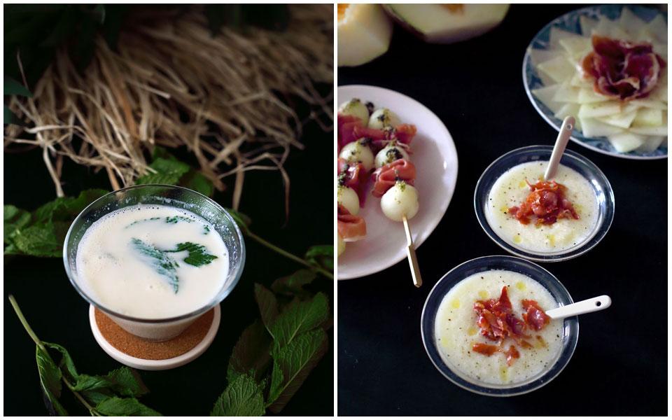 La segunda es una sopa fría de melón con menta y jamón salteado.