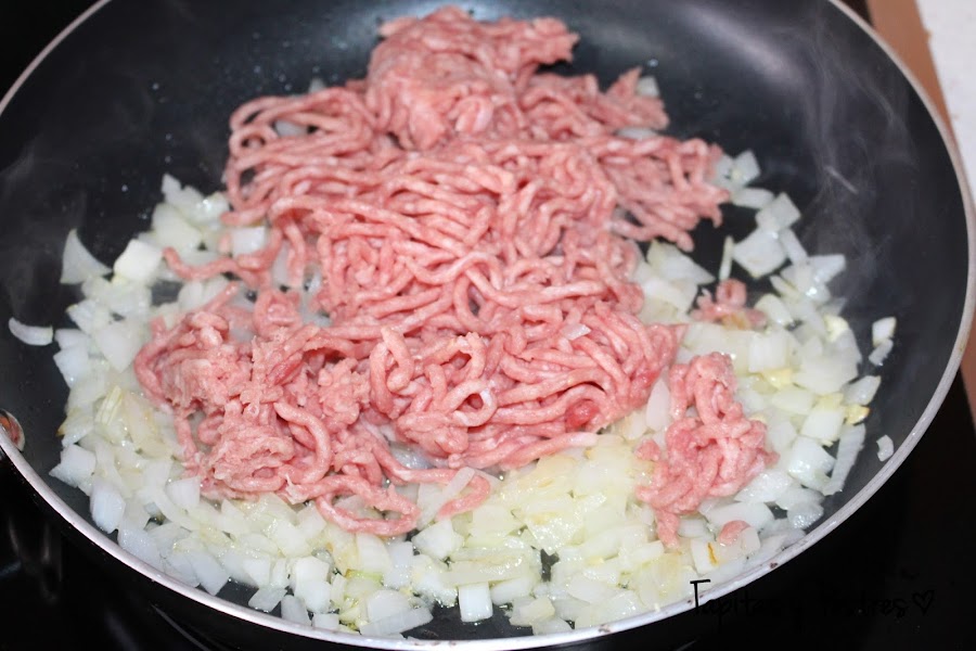 Añadimos la carne picada y damos vueltas hasta que se haga.