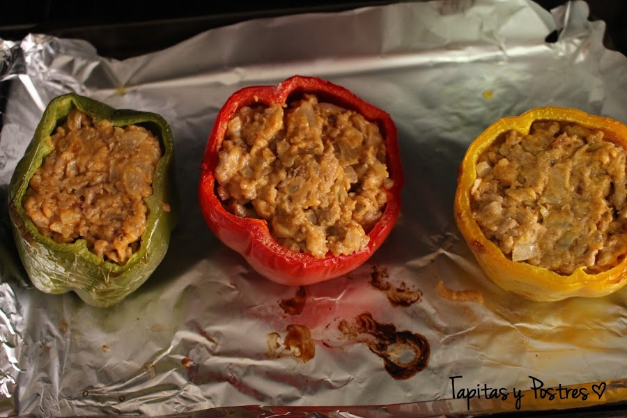 El ingrediente de este mes, era el pimiento y yo tenia mas que clara la receta, porque hace tiempo que me apetecía hacer pimientos rellenos y esta ocasión era perfecta.