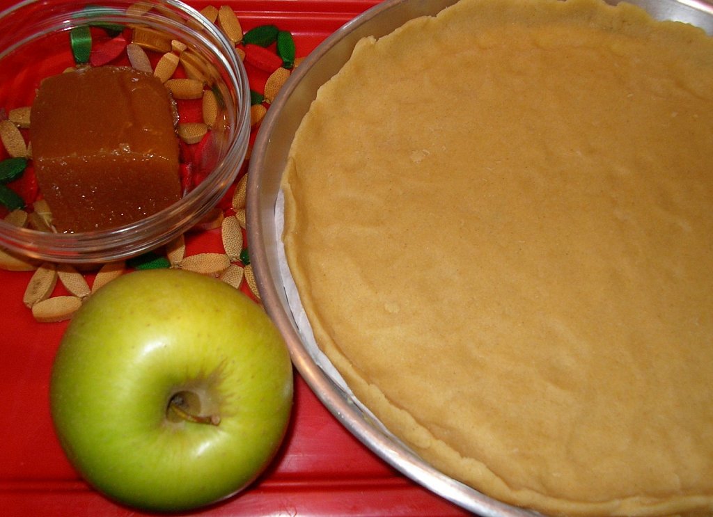 Manzana,Membrillo,Mermelada de maracuyá,harina de maíz,Mantequilla,Harina,HuevoIngredientes para la masa: