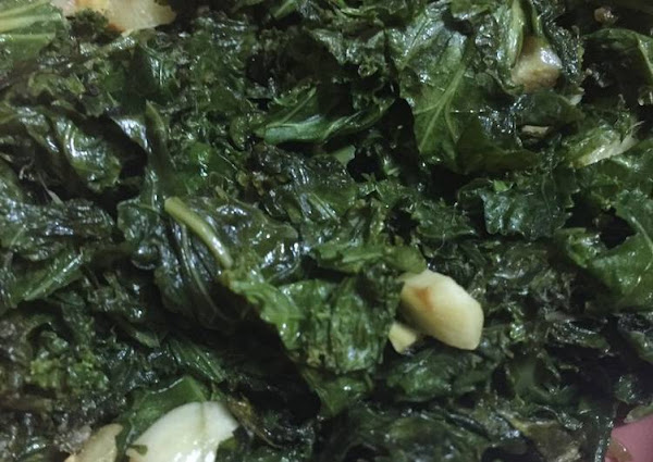 Cuando están tiernos los ajos, le agregas las hojas picadas y las cocinas hasta que también están tiernas.
