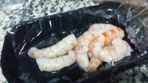 Pelamos los gambones. Las cabeza y las pieles las podemos utilizar para hacer un caldo. Salamos los gambones.