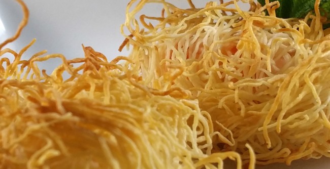La pasta kataifi, es una pasta que conocí hace algún tiempo en una cena porque queda muy original. Esta pasta se presenta en forma de fideos finos. Es de origen árabe aunque en algunos sitios he leído que su origen es griego. Yo la compré en un supermercado árabe.