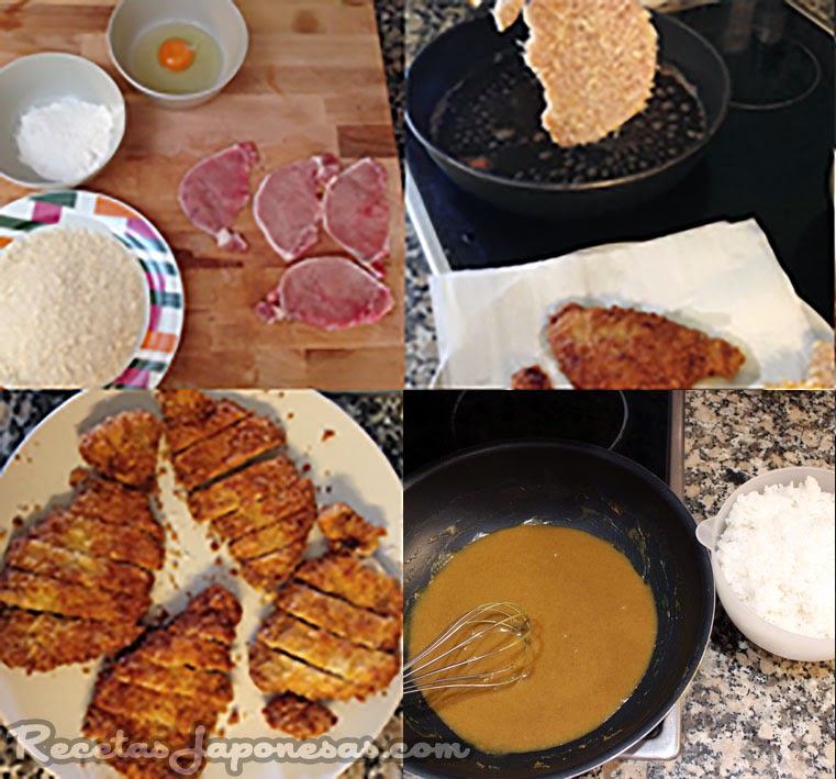3. Corta los tonkatsu a lo ancho en aproximadamente 2 cm de largo.