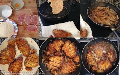 1. Corta cada tonkatsu en aproximadamente 2 cm de largo.