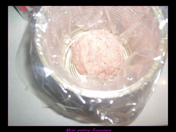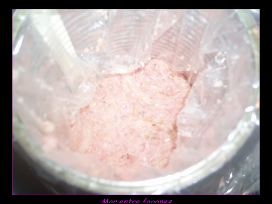 Clavar un cuchillo o brocheta en la parte de arriba para que no se nos escape la carne. Yo no lo hice porque me ayude de un tenedor normal pinchado.