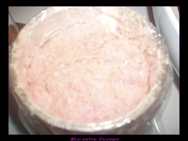 Cogemos porciones de carne de unos 100 gr. aplastamos y vamos metiendo en la lata hasta terminar toda la carne.
