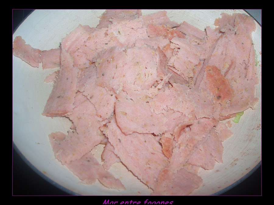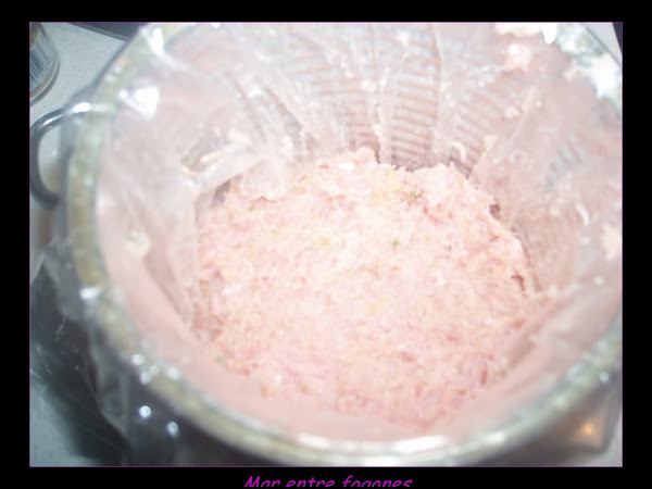 Cortar la carne al gusto. Yo usé un cuchillo de sierra de los de cortar el pan para que quedara bien finito.