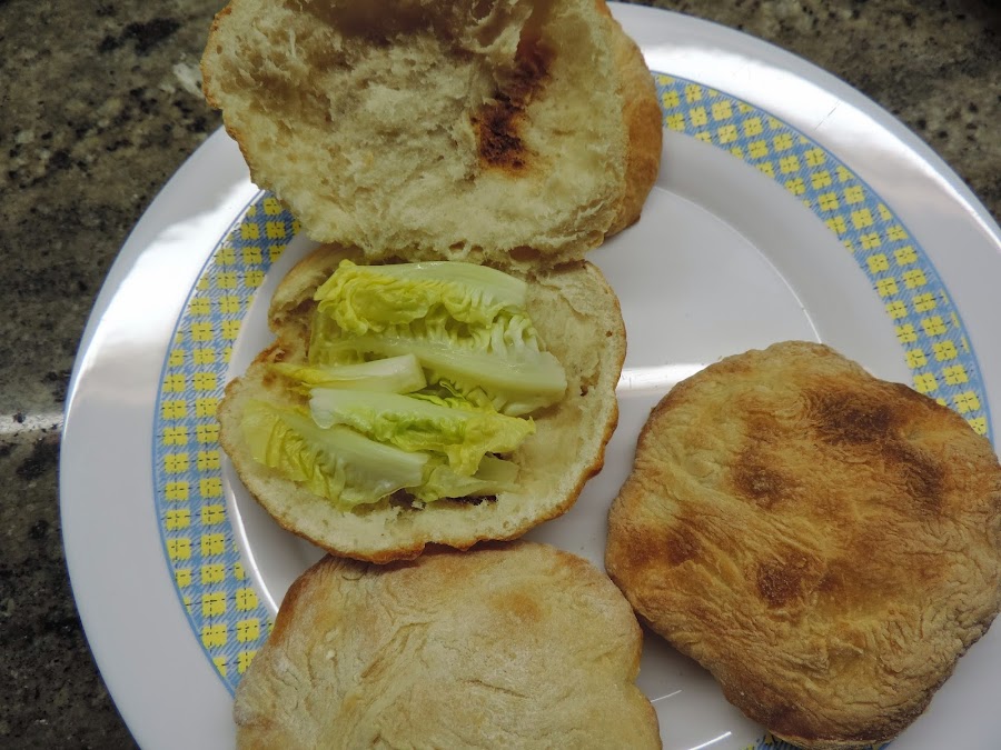 Abrimos el pan de pita para empezar a rellenarlo. Este por la mitad.