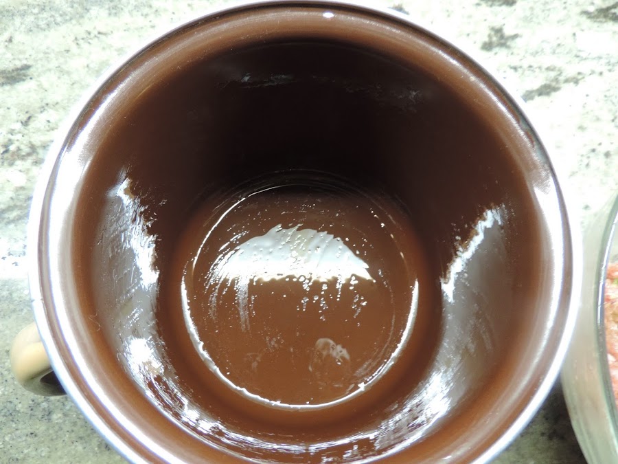 Untamos con aceite de oliva el recipiente que vamos a usar, yo he usado una lechera que tenia mi madre.