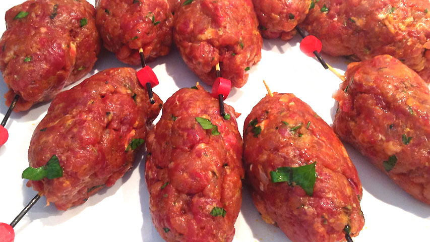 Mezcla todo muy bien y haz bolas que ensartarás en pinchitos. Reserva.