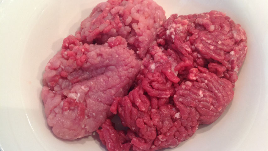 En un bol mezcla la carne picada de cerdo y la de ternera.