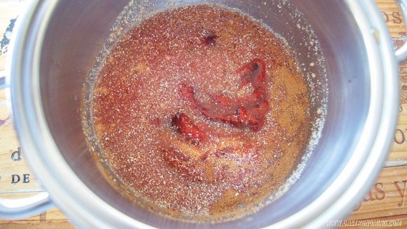 Colocar en una cazuela a fuego medio todos los ingredientes y cocinar removiendo e incorporando bien todos los ingredientes unos 7-10 minutos o hasta obtener la consistencia deseada.Retiramos del fuego y dejamos enfriar.