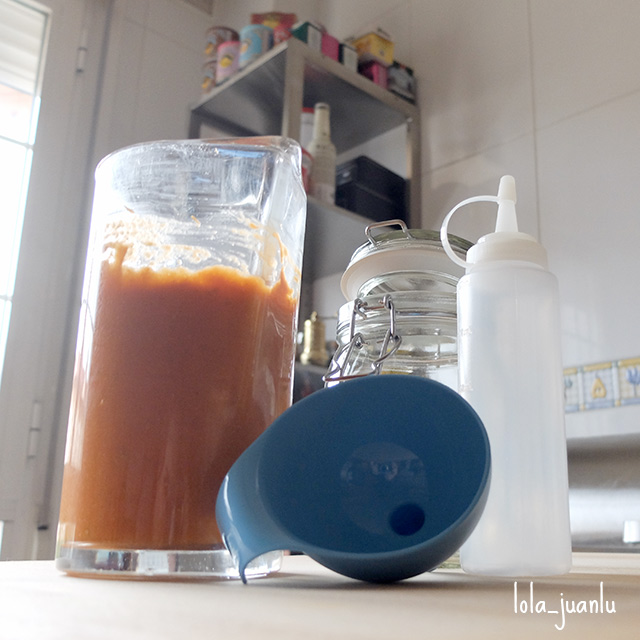 El kétchup está listo para servir o lo podemos distribuir en recipientes y guardar.