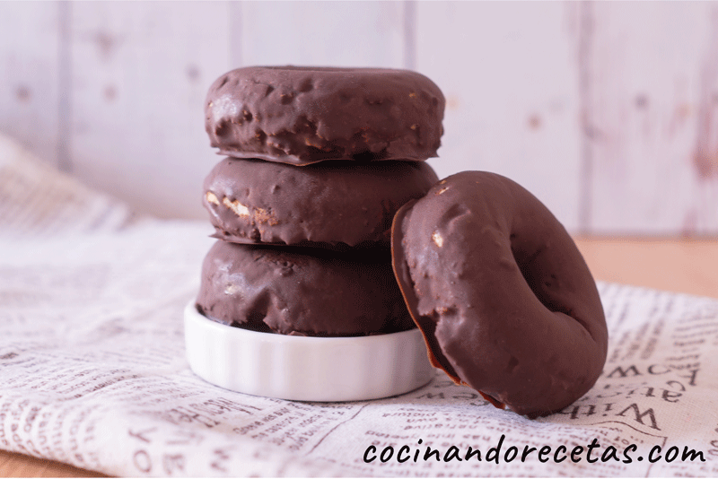 Baña los donuts en el chocolate y deja enfriar en la nevera.