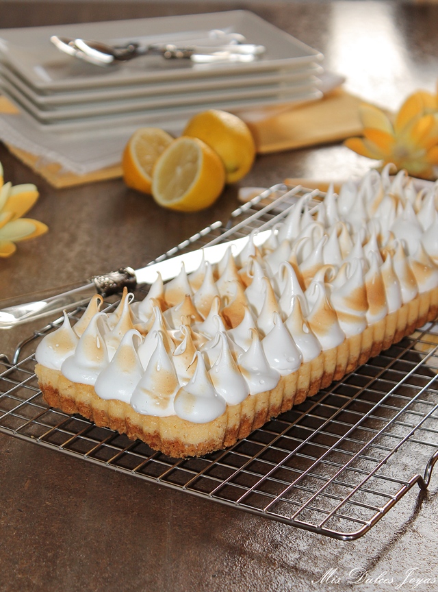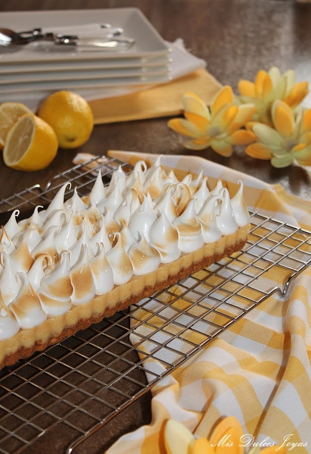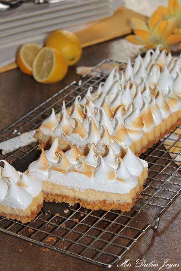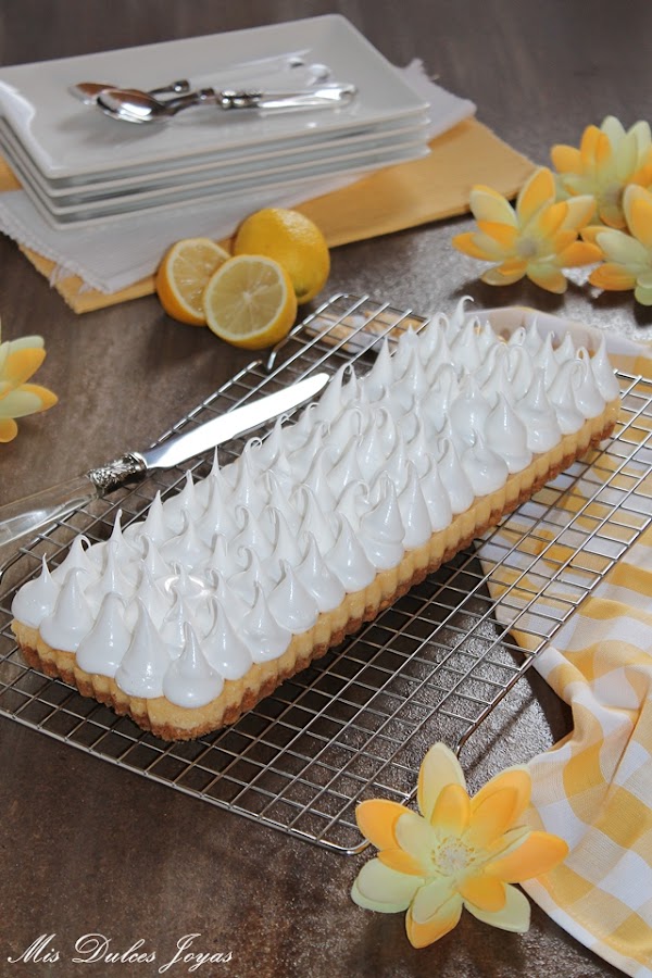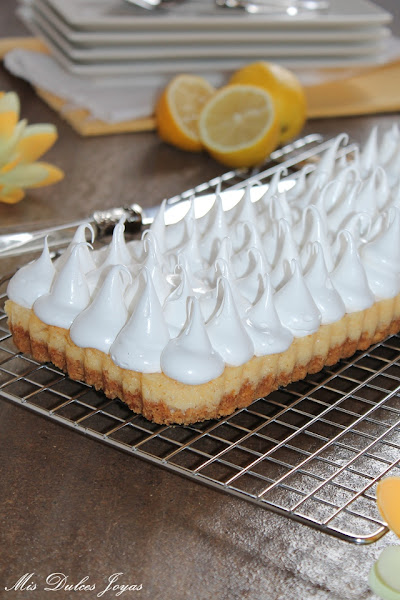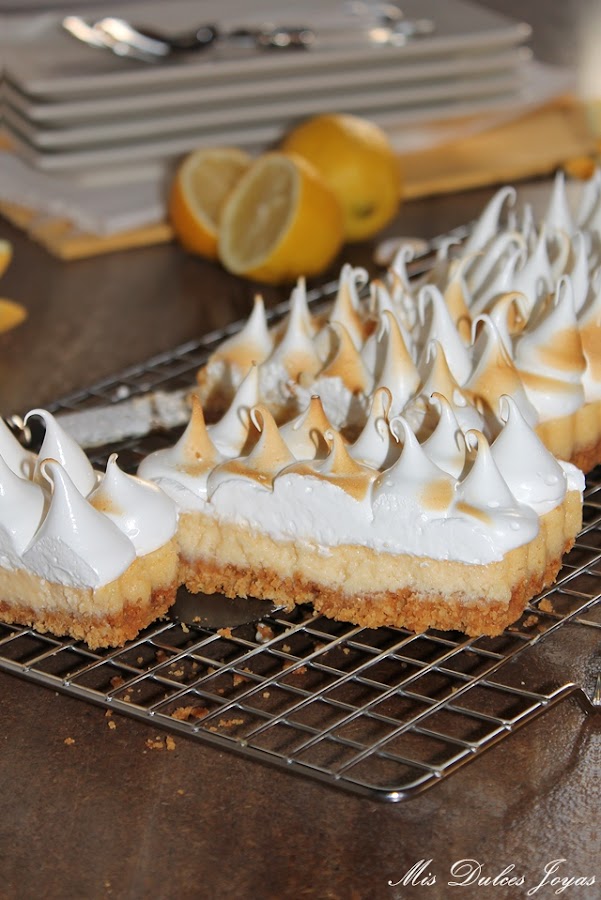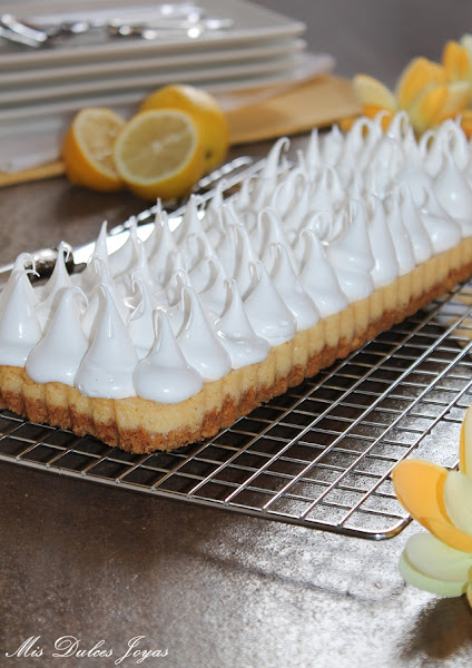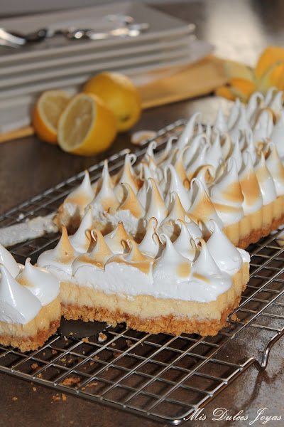 La receta es prestada de mi compañera Cristina, la autora del blog "Un pedacito de cielo". Hace un par de meses ella nos trajo su maravilloso Key Lime Pie - Pastel de Lima, y nada más verlo lo hice y me encantó. Aunque ella preparó esta receta con lima, creo (y estaréis de acuerdo conmigo) que queda muy bien con cualquier cítrico, así que yo hoy os lo traigo con limón.