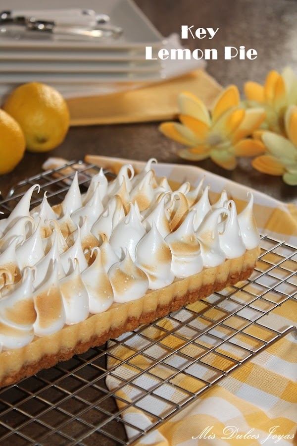 El Key Lemon Pie es un postre compuesto de una base de galletas, relleno de limón preparado con leche condensada, yemas y zumo de limón (el cual está cuajado al horno) y una cobertura de merengue suizo ligeramente tostado, que por supuesto podemos sustituir por un merengue italiano o francés (el que a nosotros más nos guste o mejor se nos de hacerlo).