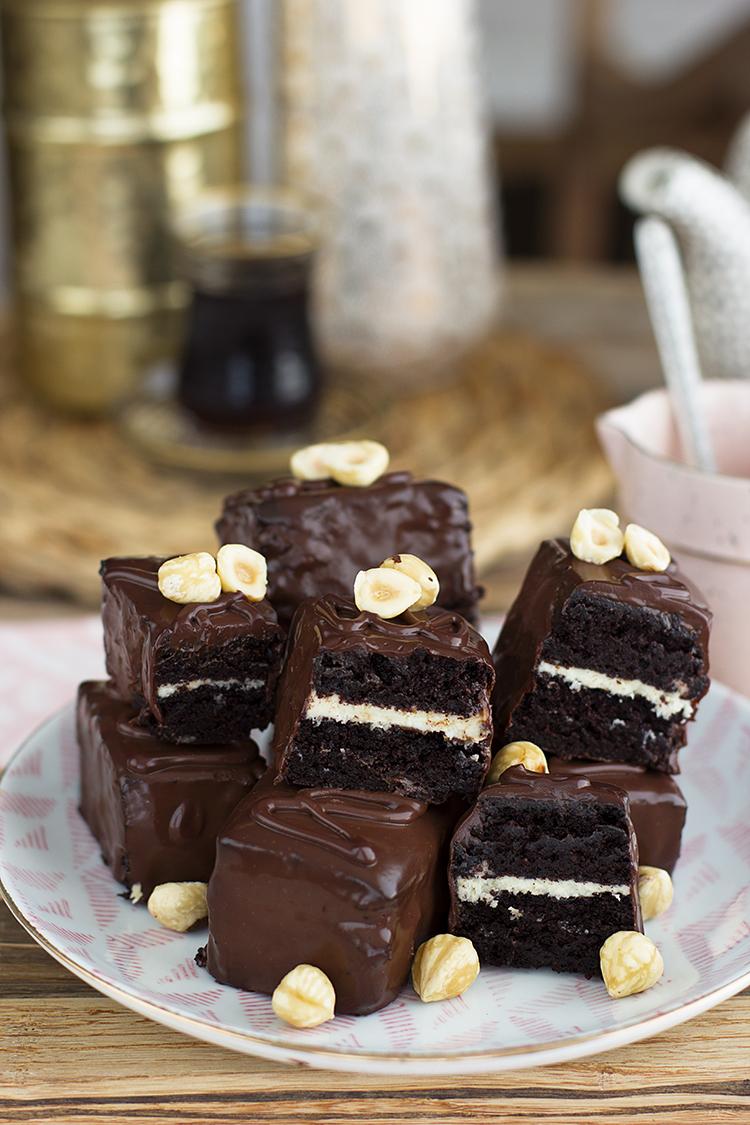 Aplicamos el relleno y ponemos la tapa y cubrimos bien con film transparente y congelamos por un par de horas para que coja cuerpo y sea sencillo cortarlo en barritas sin que se desparrame el relleno.