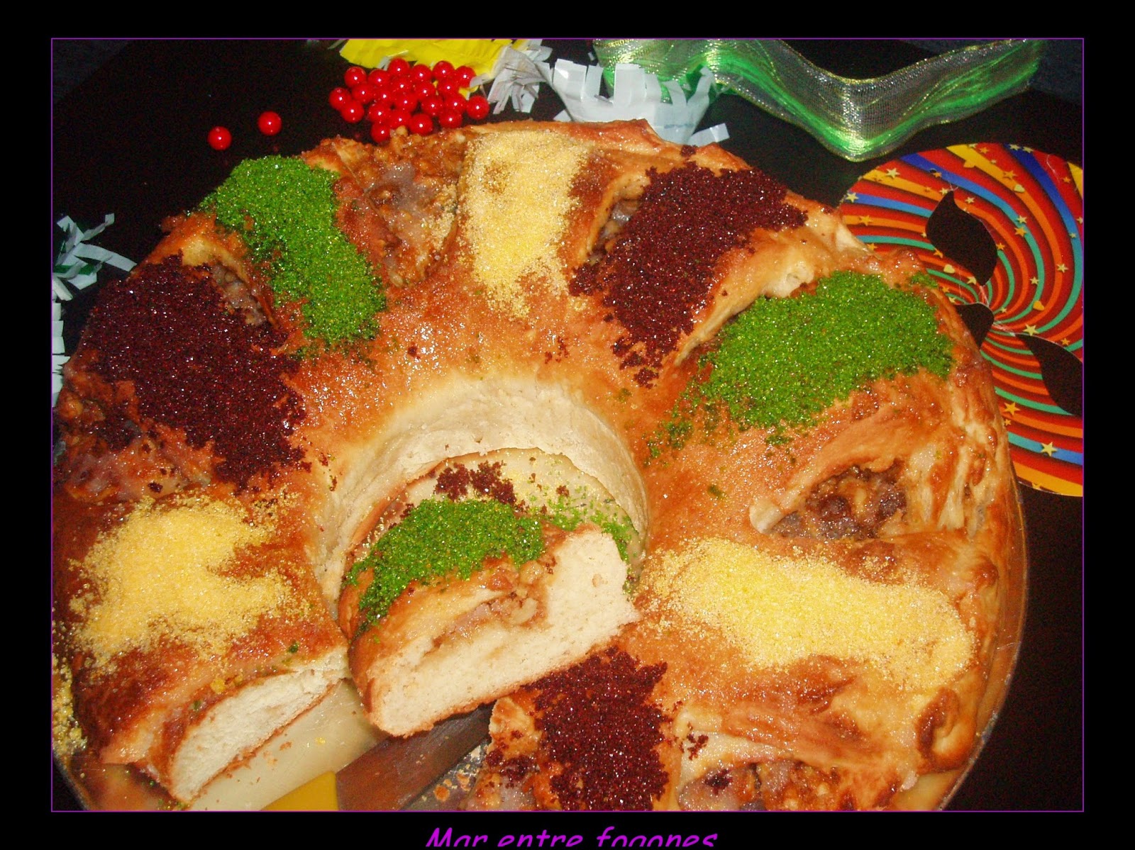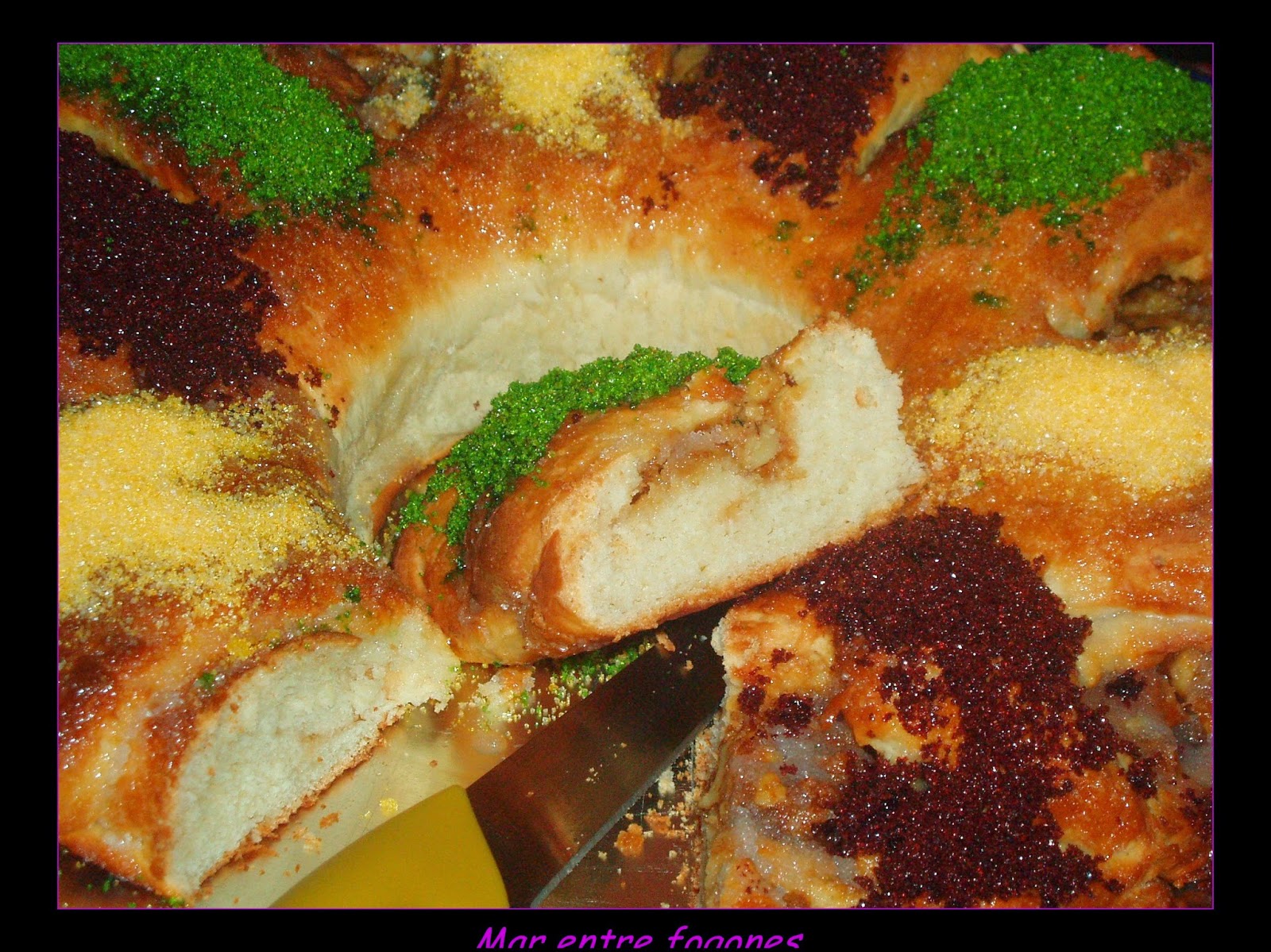 El King Cake tiene unos colores fundamentales que representan algo. Estos colores hay que respetarlos. No voy a obligar a nadie a utilizar colorantes si no quiere hacerlo, pero si deciden no usarlos se las tendrán que ingeniar para que esos colores aparezcan en la foto. Estas son las dos normas que pongo, el resto lo dejo a elección de cada uno. Además de la forma original del postre, se pueden encontrar muchas versiones, así que eso lo dejo a elección de cada uno.