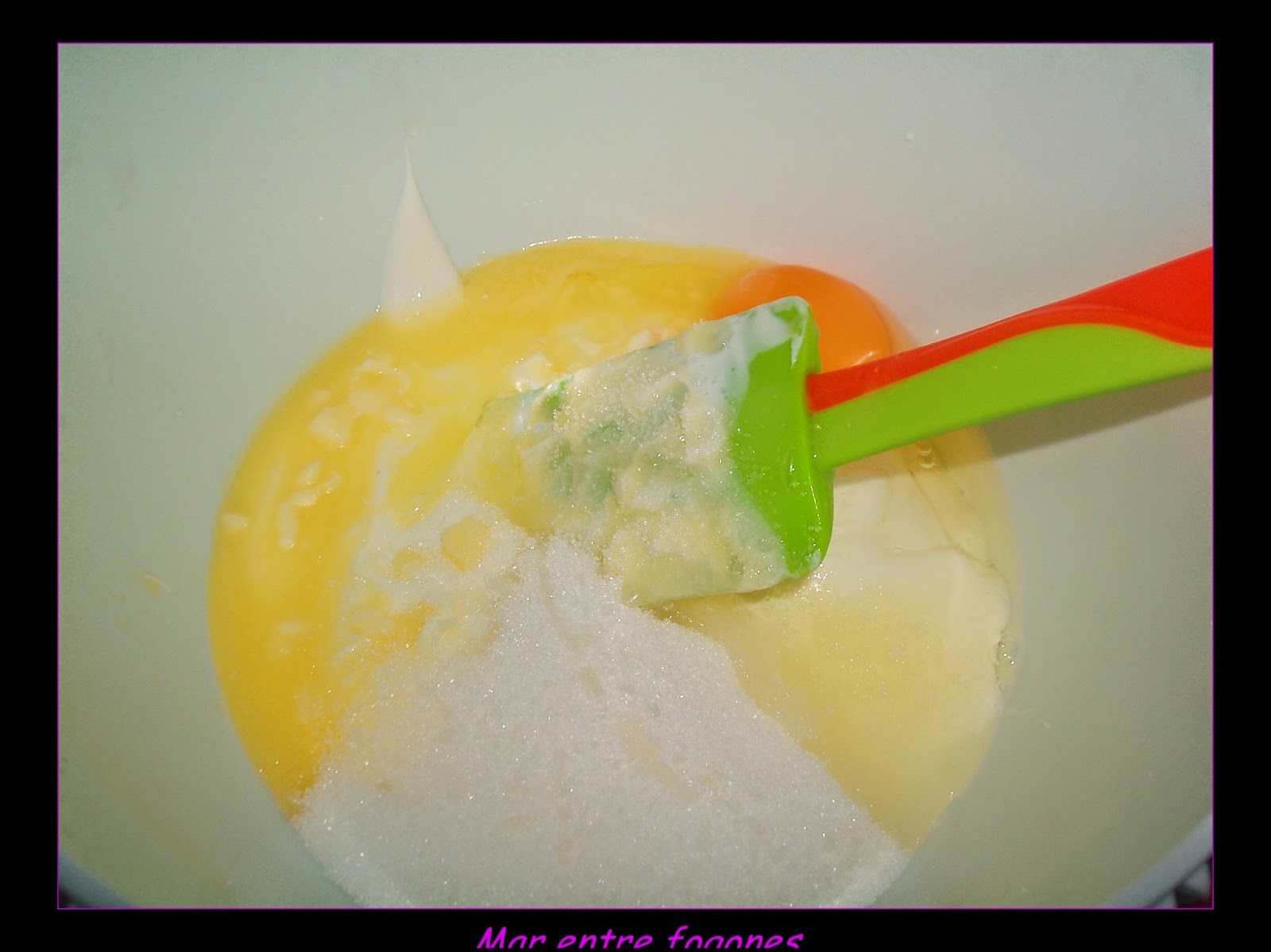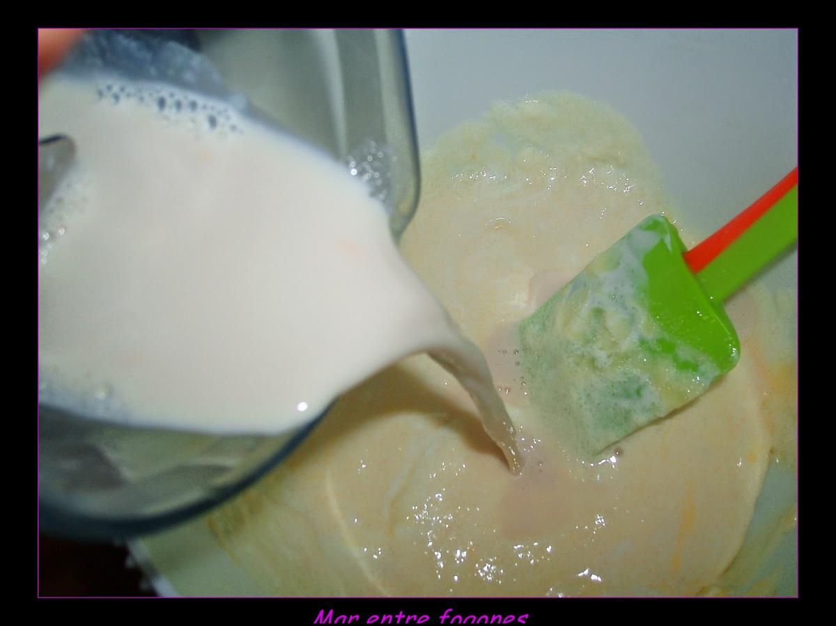 Cuando está todo bien batido añadimos la sal y la harina. poco a poco mientras vamos mezclando.
