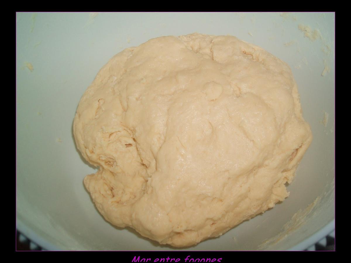 Cuando tenemos toda la harina echada mezclamos y amasamos hasta que quede una masa suave.