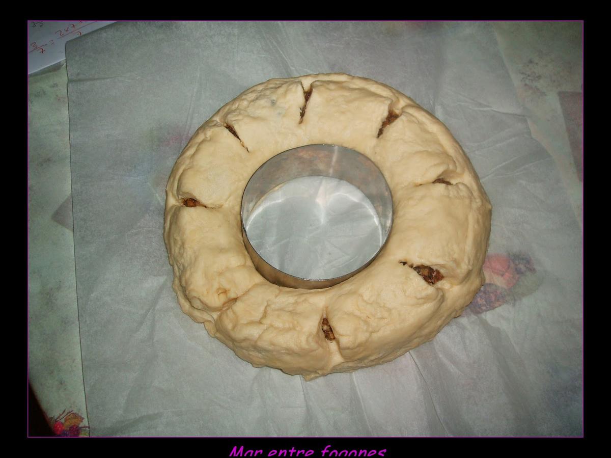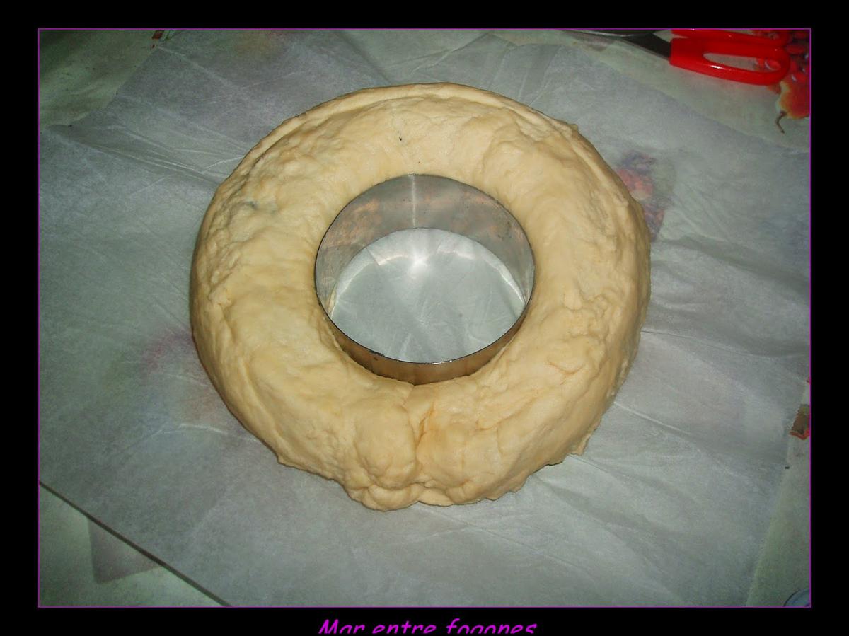 Damos forma bien redonda y ponemos algo en el centro para que al aumentar no se nos cierre el agujero del centro.