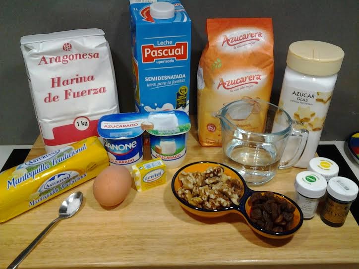 150 g azúcar glas, 40 g mantequilla y 50 ml agua caliente (glasa)Fuente para la masa: Cocinaros