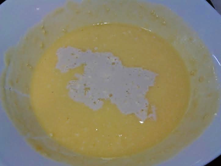 Por otro lado, calentamos un poco la leche y disolvemos en ella la levadura. Cuando esté bien disuelta la echamos a la mezcla anterior.