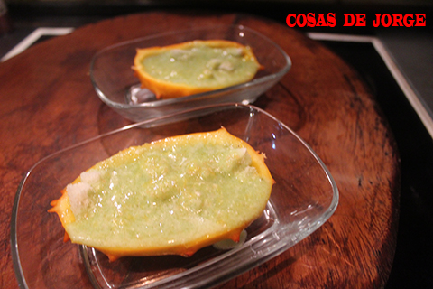 En el blog “El bocado de la huerta” encontré una idea para realizar la receta que a continuación os presento, se trata de la receta “Kiwano con pan y suero vegetal”.