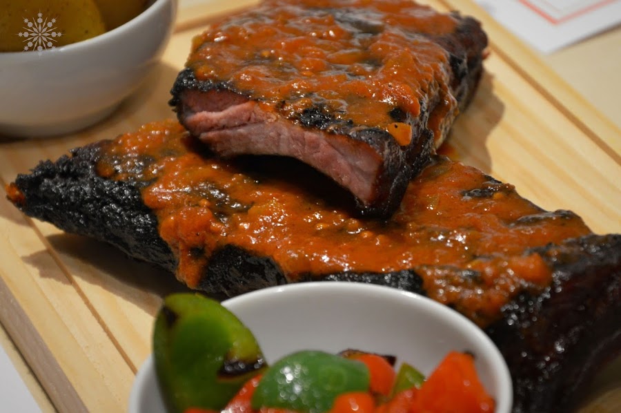 Empezamos con las famosas costillas marinadas y ahumadas durante 7 horas. La salsa barbacoa que le añaden es casera y está realmente buena!