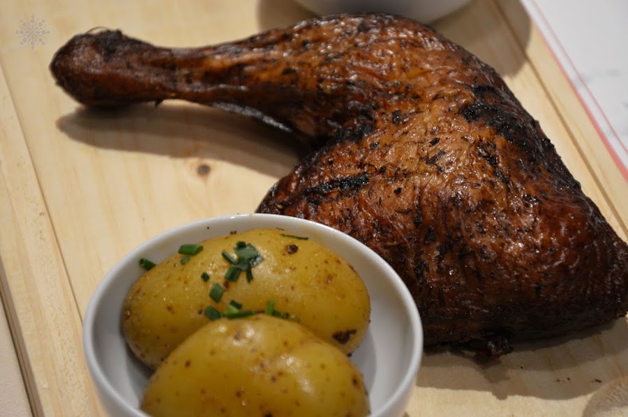 Pollo ahumado en finas hierbas y toque de Bourbon: cocinado a la perfección! Muy tierno y jugoso.