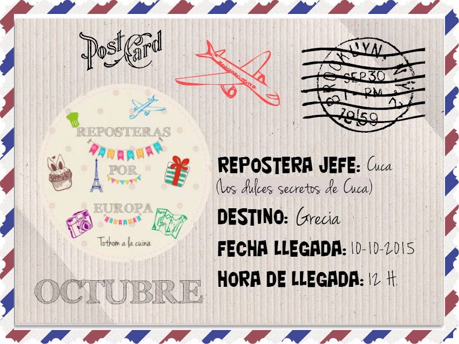 Cuando me enteré del destino de este mes me puse muy contenta y no fue tanto por el país en si, que lo merece, pues Grecia es especial, sino por la persona que eligió el destino del reto, este mes viajamos de la mano de Cuca del blog "Los dulces secretos de Cuca", y si no conoces el blog pues te animo a visitarlo y conocer a Cuca, ella es puro amor y le tengo un aprecio muy especial, siempre tiene palabras bonitas para hacerte sentir bien y deliciosas recetas para alegrar hasta el alma.