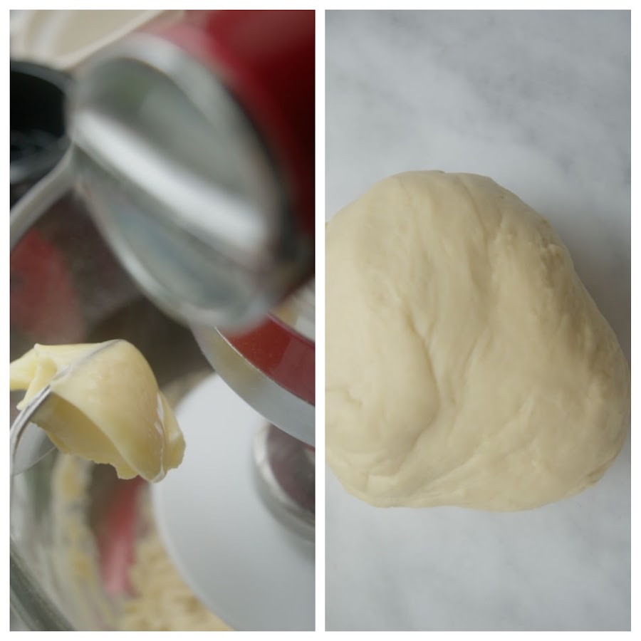 When butter is almost combined, follow mixing for 12 minutes more. The doug will be very smooth although a bit hard. But dont worry. Its that way.